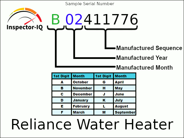 Reliance water heter age by serial number format 3